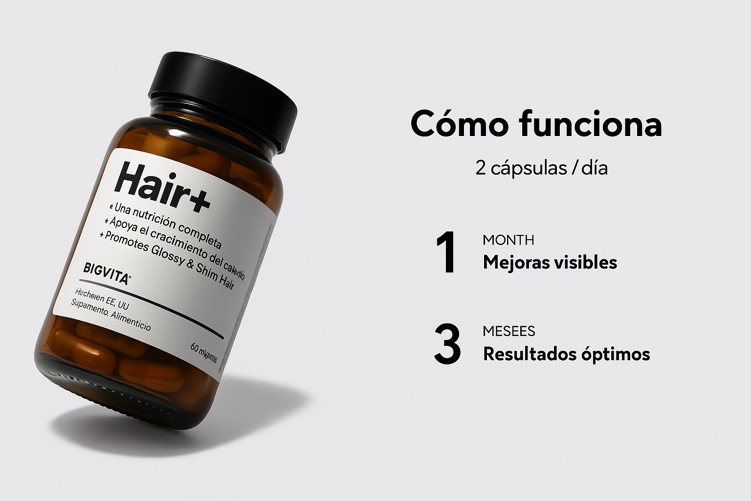 Después de tomar Hair+ por al menos 56 días